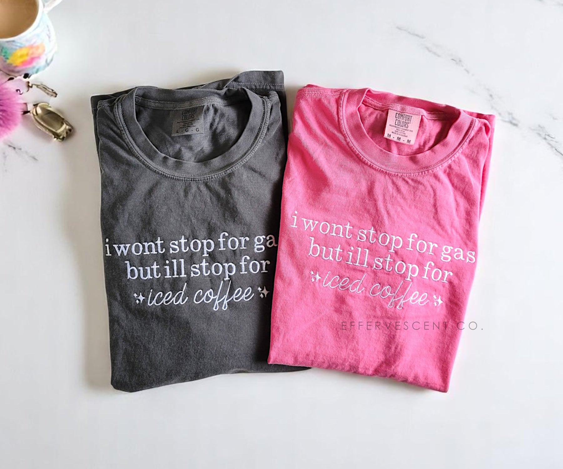 I Won't Stop For Gas But I'll Stop For Iced Coffee | Embroidered Tee